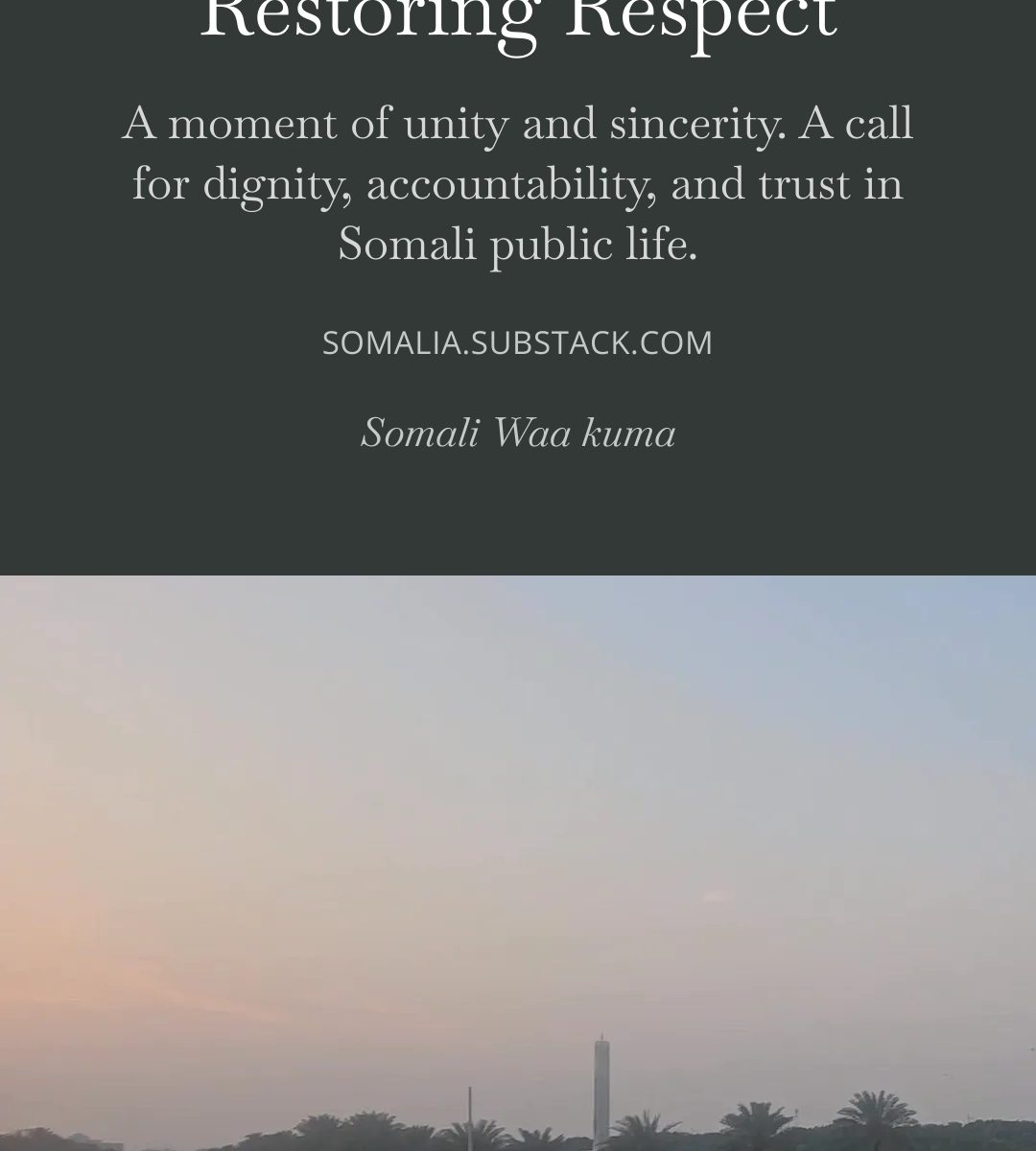 Waa baaq lagu soo celinayo kalsoonida iyada oo loo marayo daacadnimo, sharaf, iyo ixtiraam wadajir ah. Kuwani ma aha fikrado la dooran karo, balse waa saldhigga maamul mas’uuliyadeed iyo dib-u-cusboonaysiin siyaasadeed oo dhab ah oo Soomaaliya ka hirgasha.