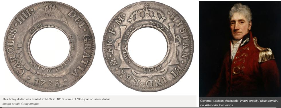 Taas ayaa inoo celinaysa gumaysigii New South Wales, halkaas oo sheekadu si dhab ah u noqoto mid Australian ah. Sanadihii hore ee gumaysiga, lacagtu waxay ahayd jahawareer. Ma jirin lacag maxalli ah oo rasmi ah. Halkii, New South Wales waxay ku tiirsanayd isku-dar lacag qalaad ah. Lacagta Ingiriiska waxay la wareegi jirtay lacagaha Dutch guilders, Portuguese johannas, Indian rupees, iyo Spanish dollars. Inta badan lacagtaas waxay ku iman jirtay ganacsi ay la sameeyaan maraakiibta soo booqata, waxayna si degdeg ah dib uga bixi jirtay. Ganacsi wuu jiray. Xasillooni lacageedse ma jirin.